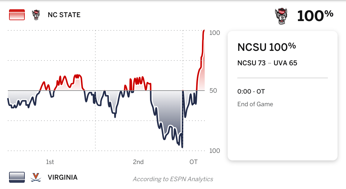 Compare that to the Duke and UNC losses to the Pack. NC State came out and kicked their butts in the second halves in those games. Hidden in our own fan angst, in the āconfirming the national narrativeā, is that we played NC State tougher than Duke and UNC did.