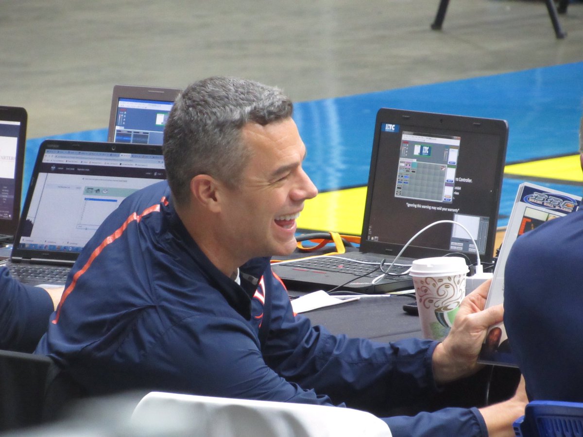 Defending national champion Virginia head coach Tony Bennett courtside @BBCbasketball