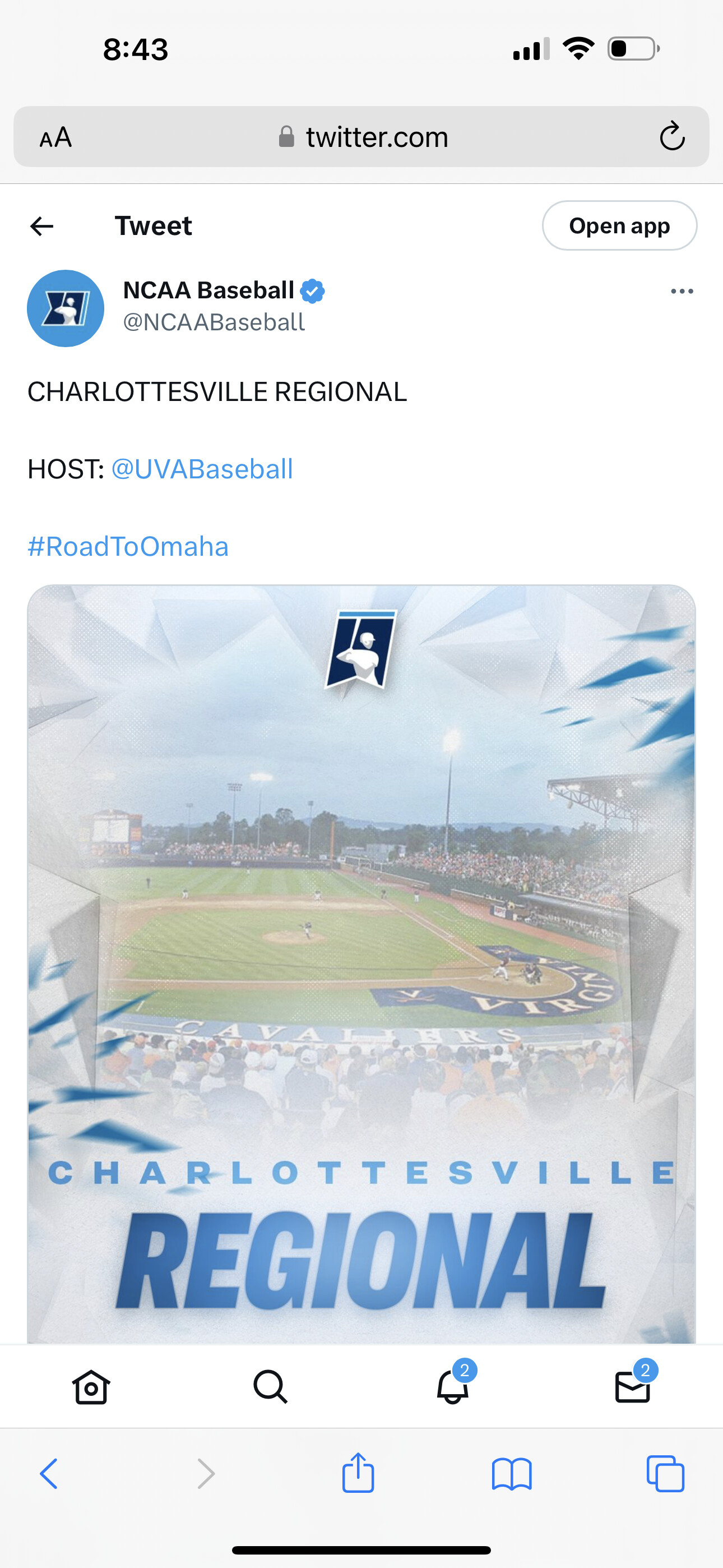 D1 Baseball has the Hoos as the overall 8 seed in their projection this afternoon.