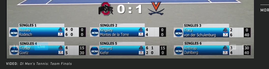 What’s the best way to watch? Also, how is it that Boar’s Head sells almost no UVa tennis gear. Saw some guys wearing stuff last time I was there, but it was all “team gear”