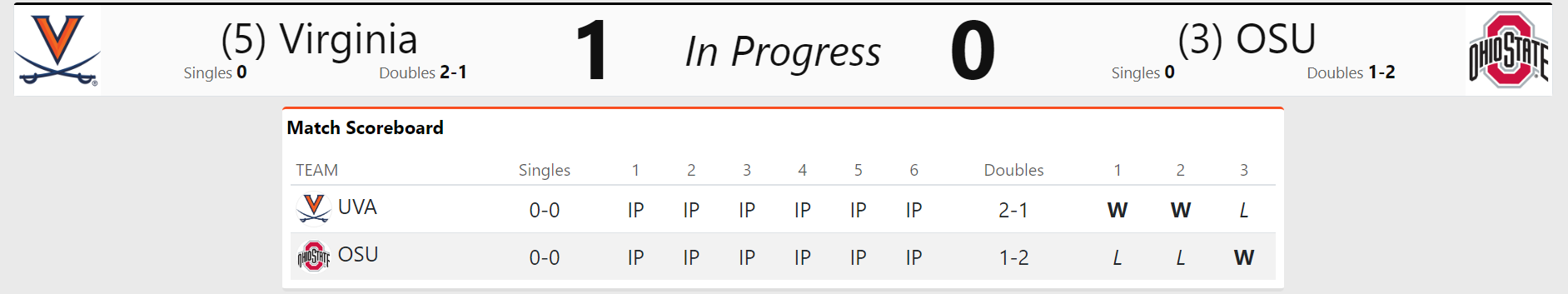 I just saw we lost twice to OSU in February 4-1 and 4-0. And the 1 was a doubles point, so we are 0-7 against them in singles.