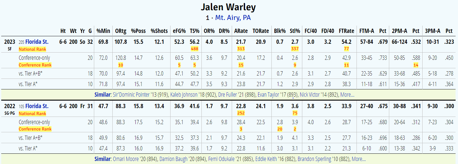 Warley was 36 and Cleveland was 22 (RSCI) in the admittedly, likely under-watched class of 2021.