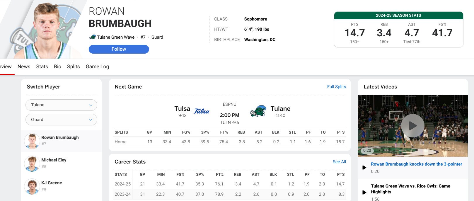 Washington DC kid. Committed to Texas under Beard and redshirted. Transferred to Georgetown and had an okay first year on a bad Georgetown team. Transferred down to Tulane (with Kaleb Banks whose also on the portal wishlist) and has had a solid year.