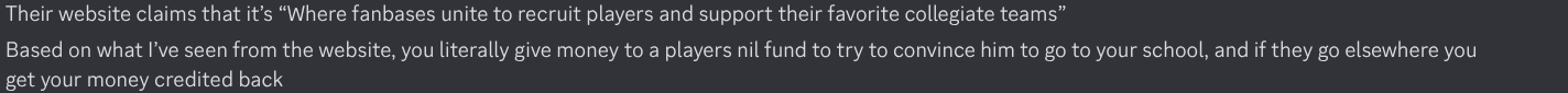 Huh. This kind of thing seems like it would have no chance passing through the proposed NIL clearinghouse, as they arenāt even really pretending to be marketing something. But who knows.
