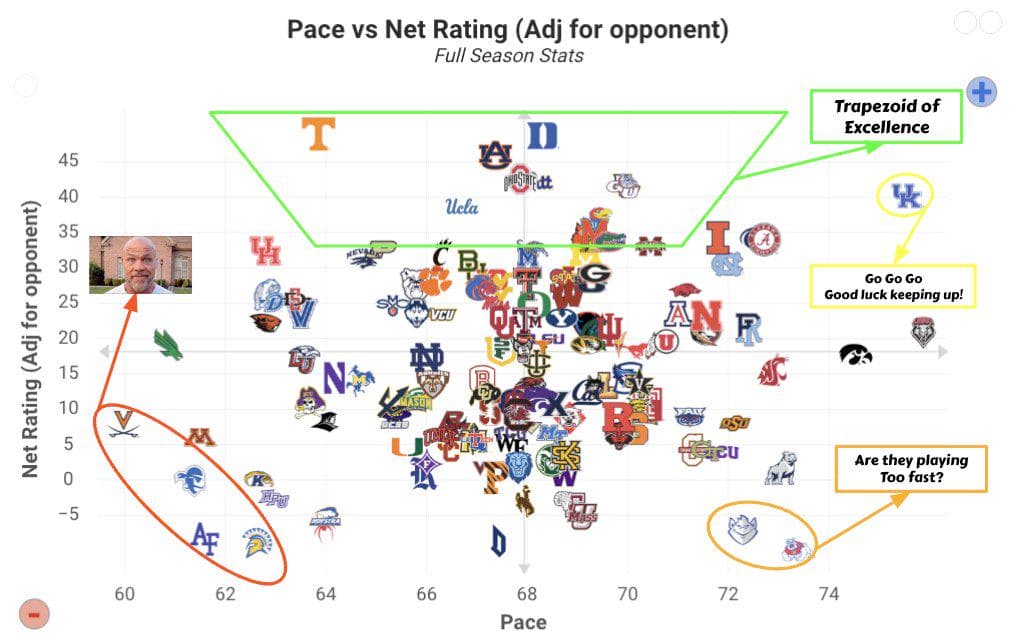 I hate that stupid trapezoid idea, just some arbitrary lines drawn on a chart with no real significance. The real main takeaway from that chart should be that Net Rating and Pace arenāt correlated with each other.