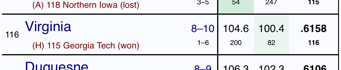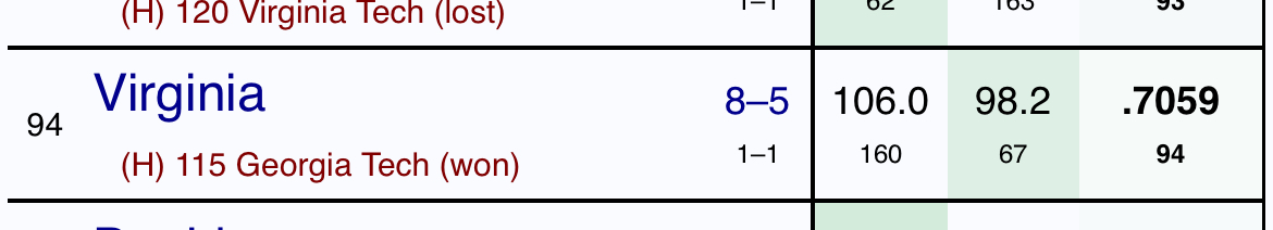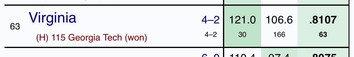 Virginia through Dec 31 (160th offense, 67th defense)