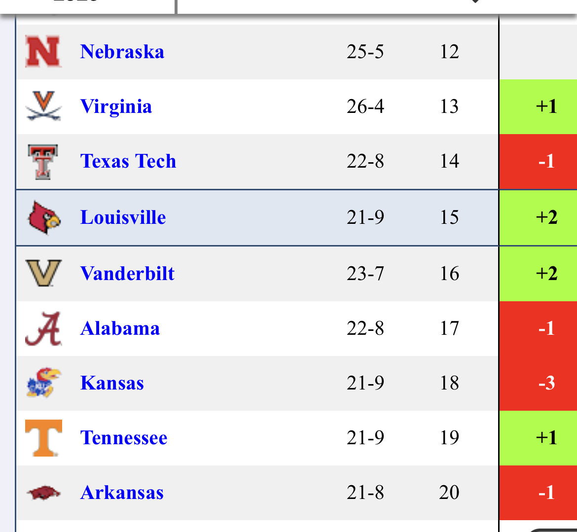 Vandy (+.49) with the biggest jump with OT win against 91-NET Ole Miss (metrics like them better). We were +.24 with Wake win.