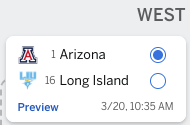 - No. 1 Arizona vs. No. 16 Queens/LIU