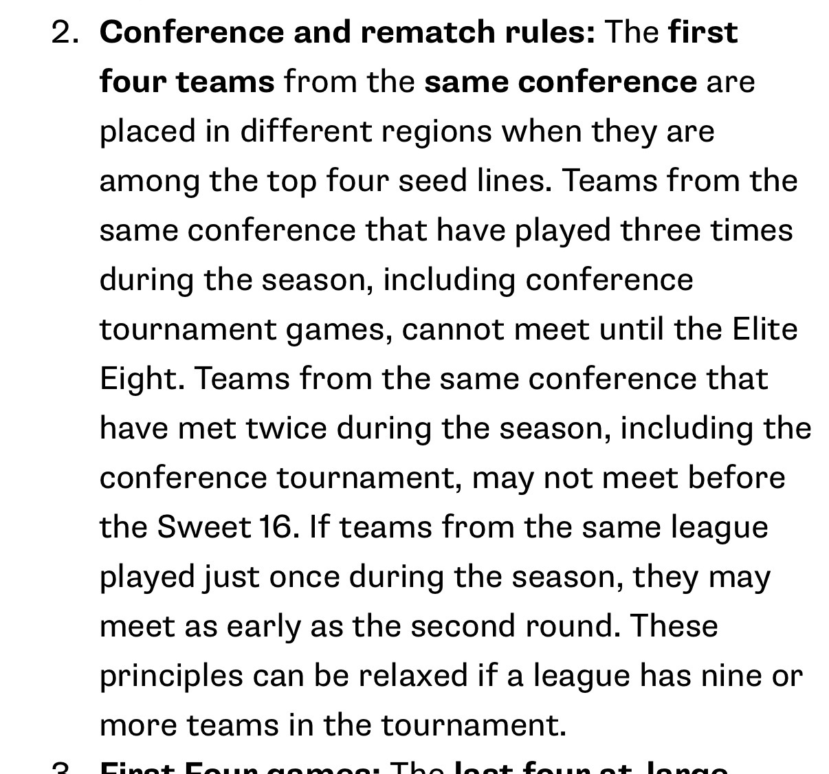 This is what the rules are right now. I agree that Iād rather have a rematch than move a team off of their true seed line, but I think itās normally feasible to avoid rematches without doing that.