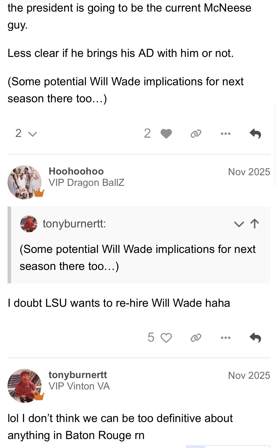 Know some connected LSU people who have been talking about this since before they made the McNeese president hire. They are absolutely going to make a run at this and Wade is open to it if the contract and NIL situation is workable.