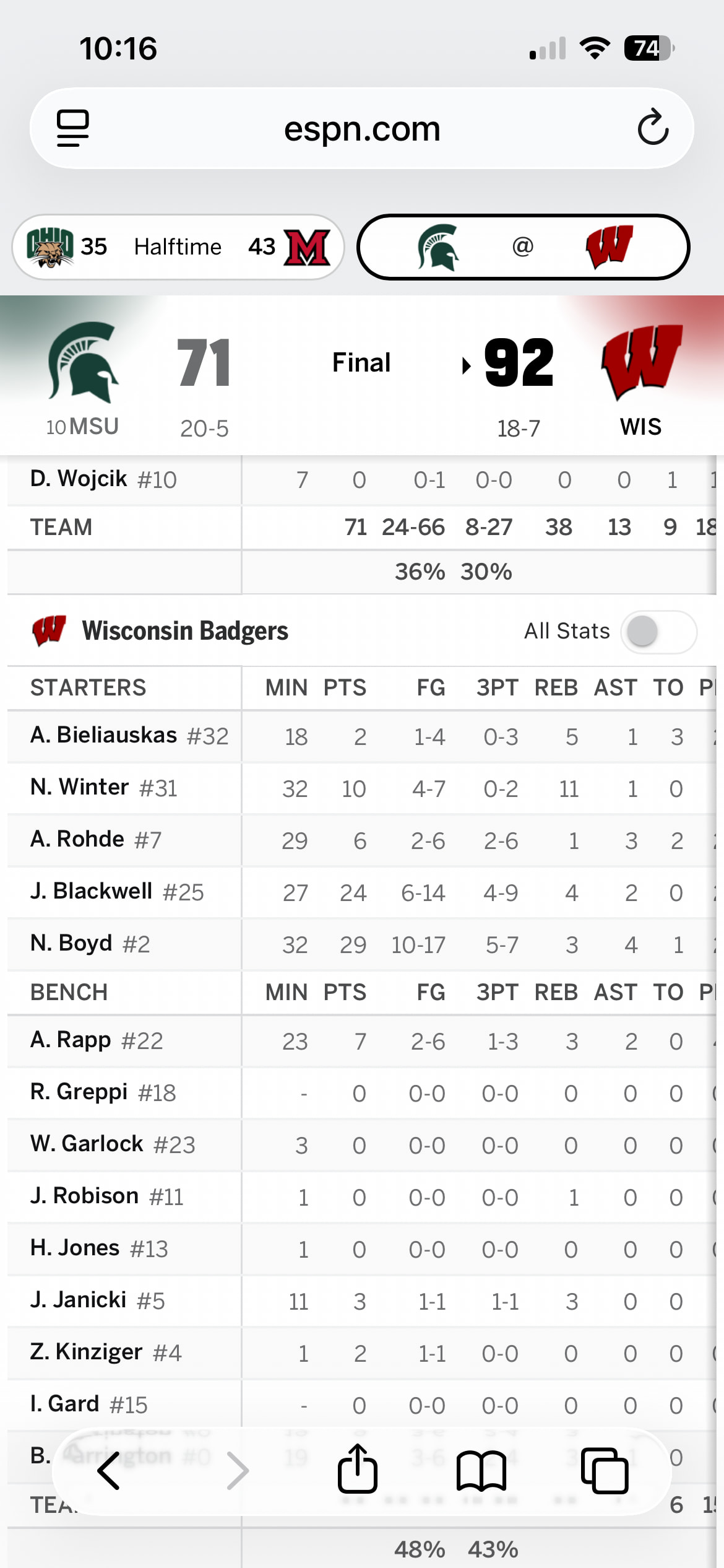 I was chuckling to myself last night as I watched parts of the Wisconsin/MSU game. I like Rhode but the only thing that he did while I was watching was catch passes from his teammates and then dribble the ball back out to the top of the key. No shots, no assists, just dribble back out. That made me think of many a post Iāve seen here.