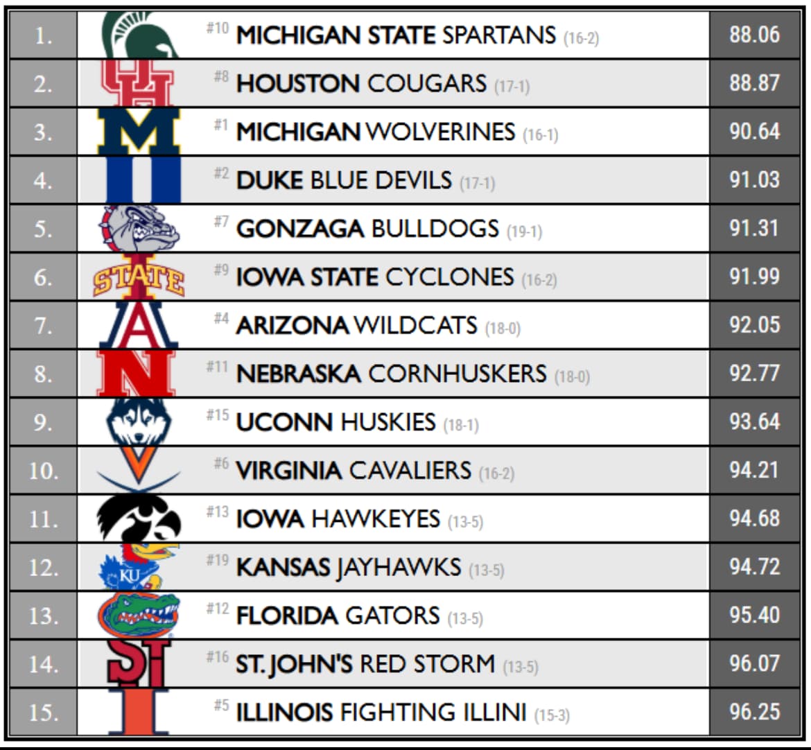According to Haslem metrics the top 15 teams in efficiency this year to date are: