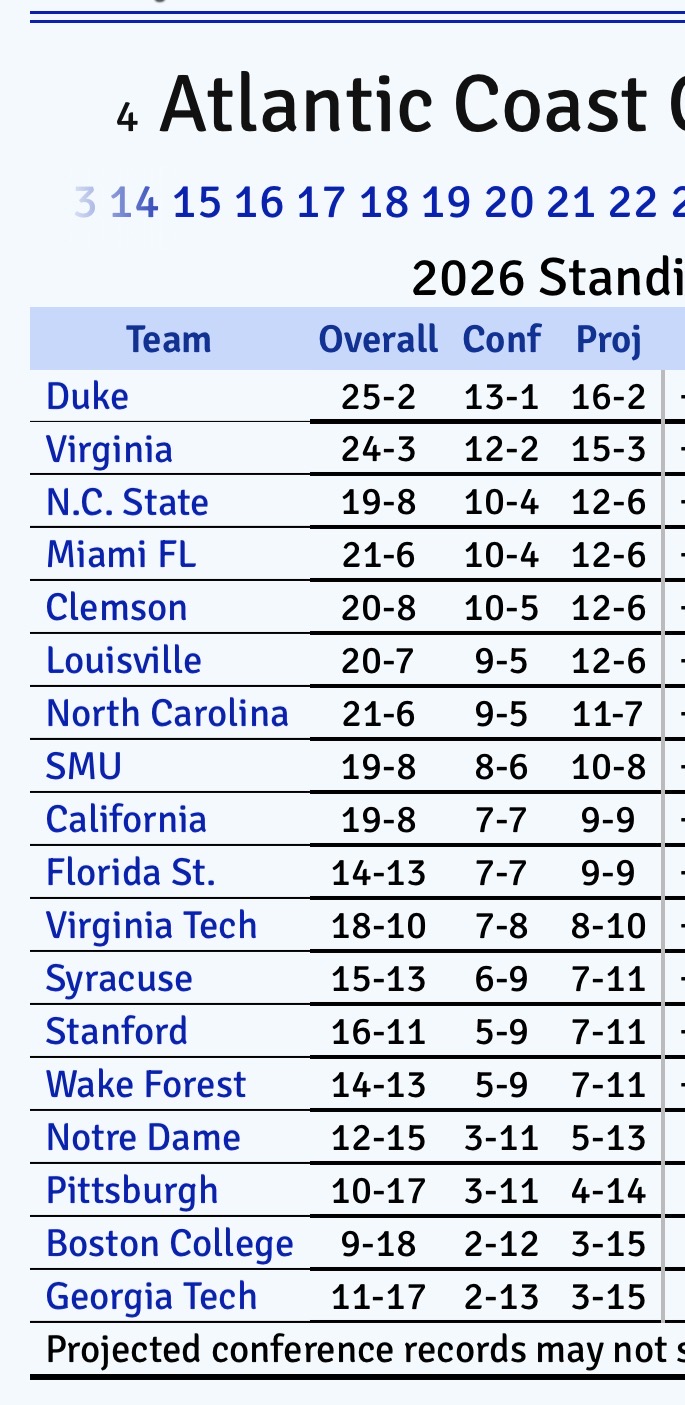 Yeah you’re right, I’m more just saying that the 2-3 seed is basically stuck with Louisville or UNC at this point I think. I guess Clemson could continue falling apart which would be nice