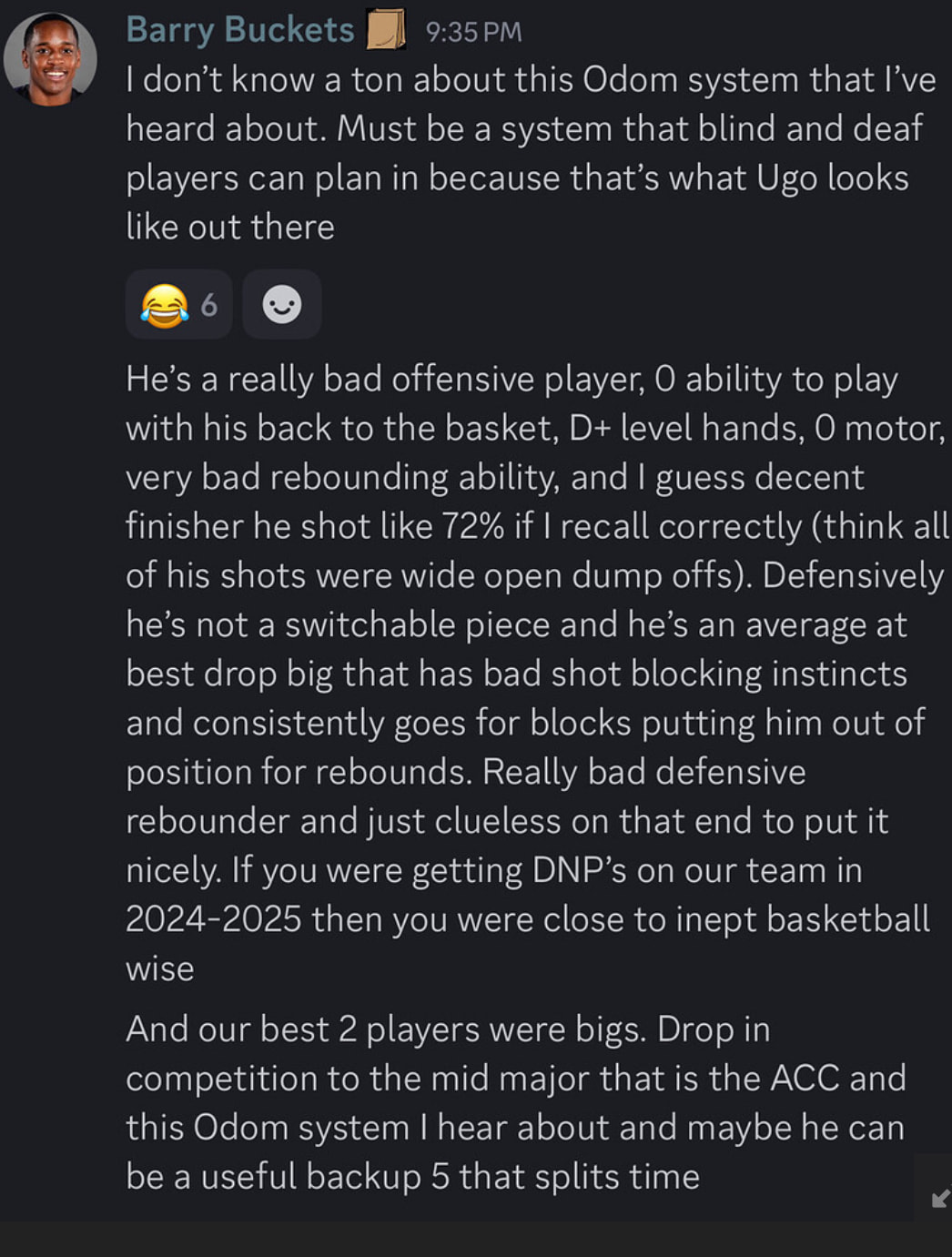 What a total dumbass take. After the way Ugo shut down Boozer, that’s Message Board Genius hall of fame stuff.