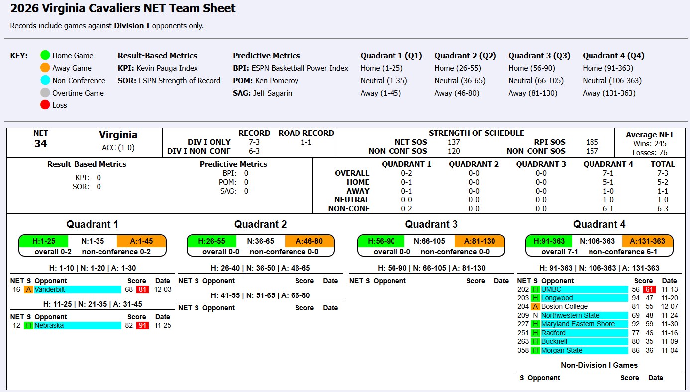 Surprising to me to see that Virginia is fifth in the ACC as of today in NET
