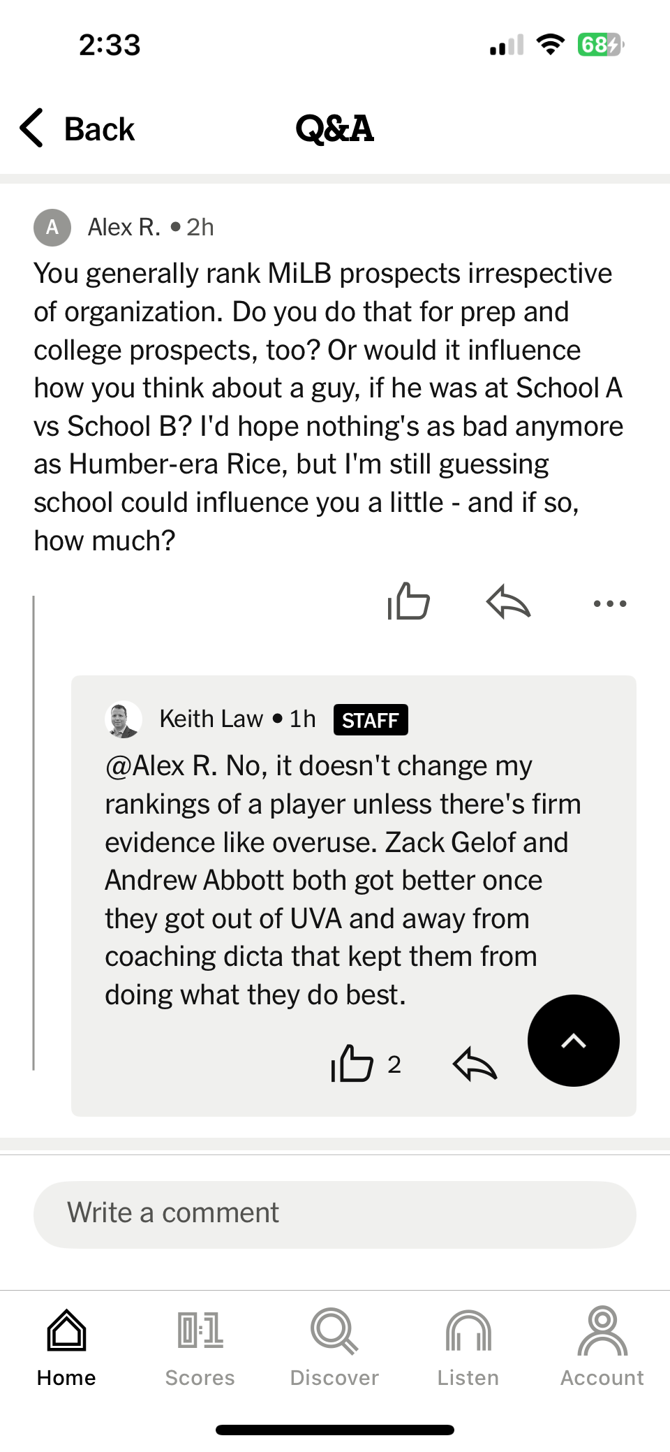 Law in particular has always had a hate boner for us, even through staff and approach changes. Hated Kuhn making every pitcher do ‘The Squat’ (was kinda valid for this), hated that by his measures we put too much stress on our pitchers’ arms (but didn’t have similar critiques towards Mike Fox at UNC or Pat Casey at Oregon State for doing even worse at their programs), and generally speaking isn’t a fan of the approach KMac takes with his hitters. It’s not just the small ball that we utilize, it’s how aggressive we tend to be early in counts and how evened out our hitters’ swings are. He’s all about launch angles, doesn’t like the line drive approach we take or the way we teach our guys to hold the bat in the box. Thinks that every player who comes out of our program has an immediate learning curve in the minors, despite us being top 5 in the country for players currently on a major league roster.