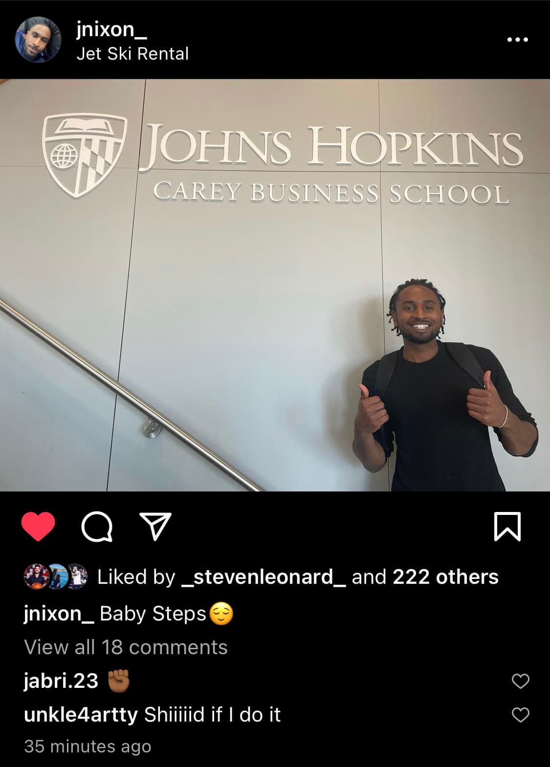 According to this post and his IG bio, Jayden Nixon will continue his basketball career at Johns Hopkins as he attends their graduate business school
