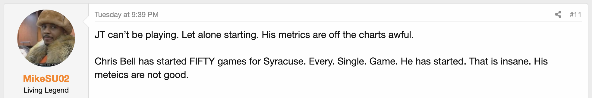 I posted in the VIP thread Trilly’s list of players he has heard of possibly transferring and Judah Mintz was on that list. Apparently it wasn’t as big a surprise/already on cuse fans’ radar. His grampa was the one who leaked the transfer noise.
