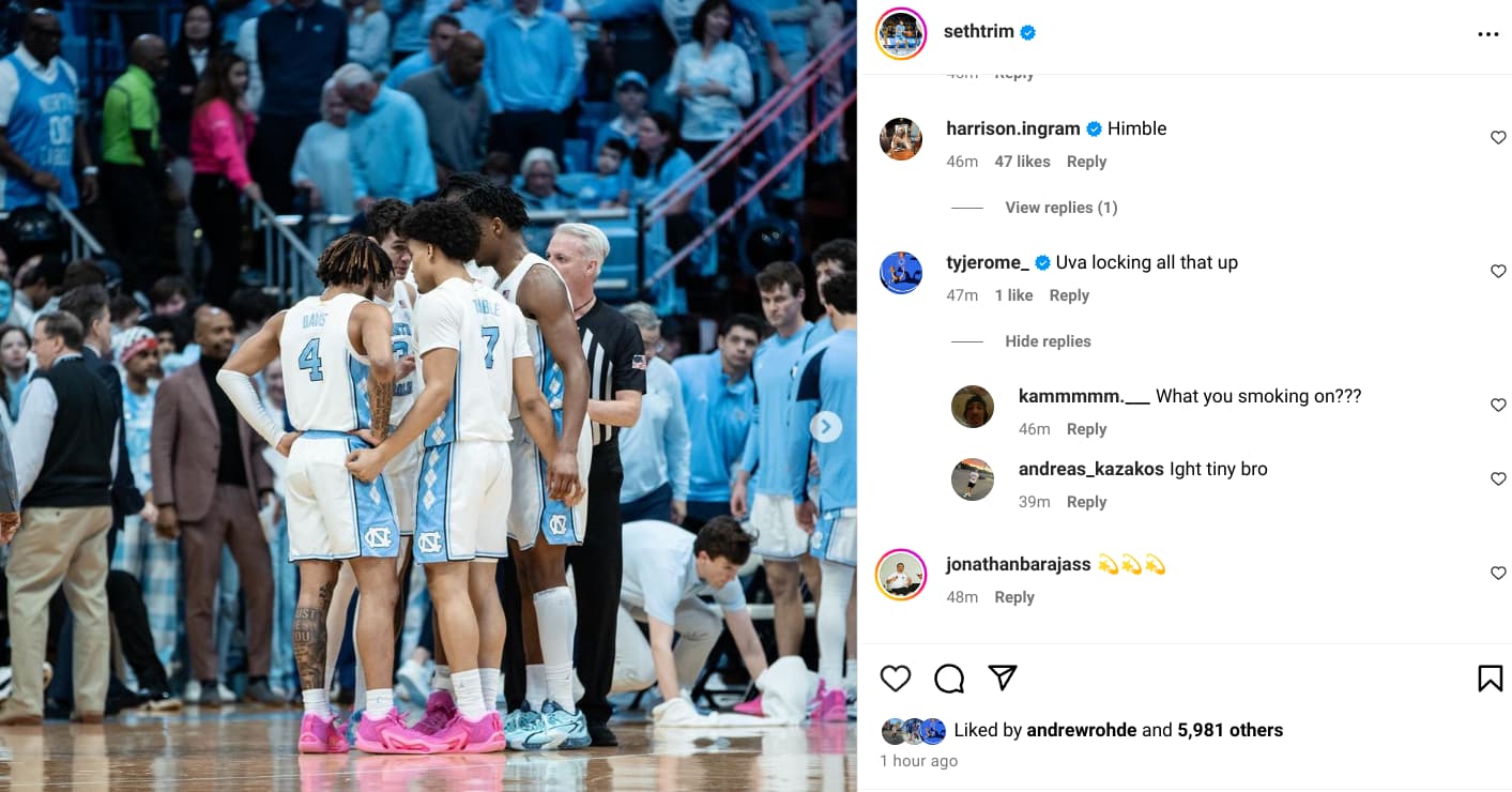 Dude has zero ACC regular season titles and zero ACC tournament titles. Only thing running into him is RJ Davis’ man on a moving screen.