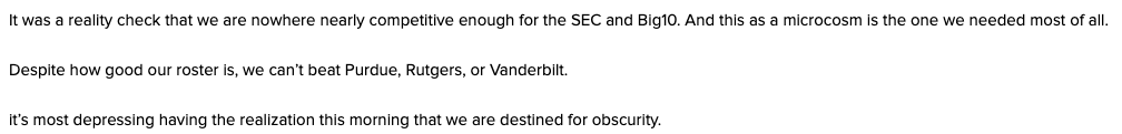 To heck with tanking their men’s program. They had a national championship quality WBB program and let their coach walk to the $EC. Unbelievable move by Whit.
