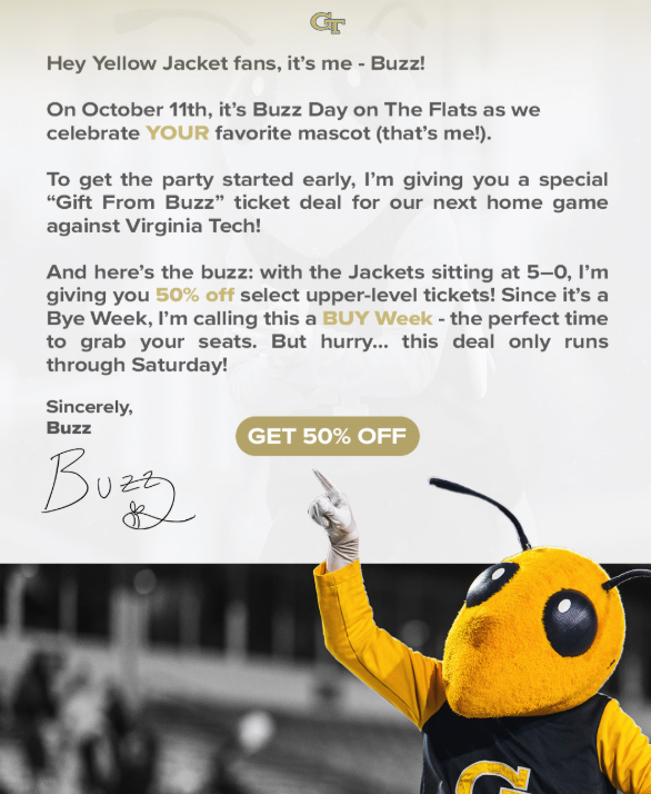 How is it the school I have virtually no connection to can give me a birthday hook-up but the ones I hold degrees from and support handsomely don’t give me sh^T. Maybe I’m becoming a yellow jacket.