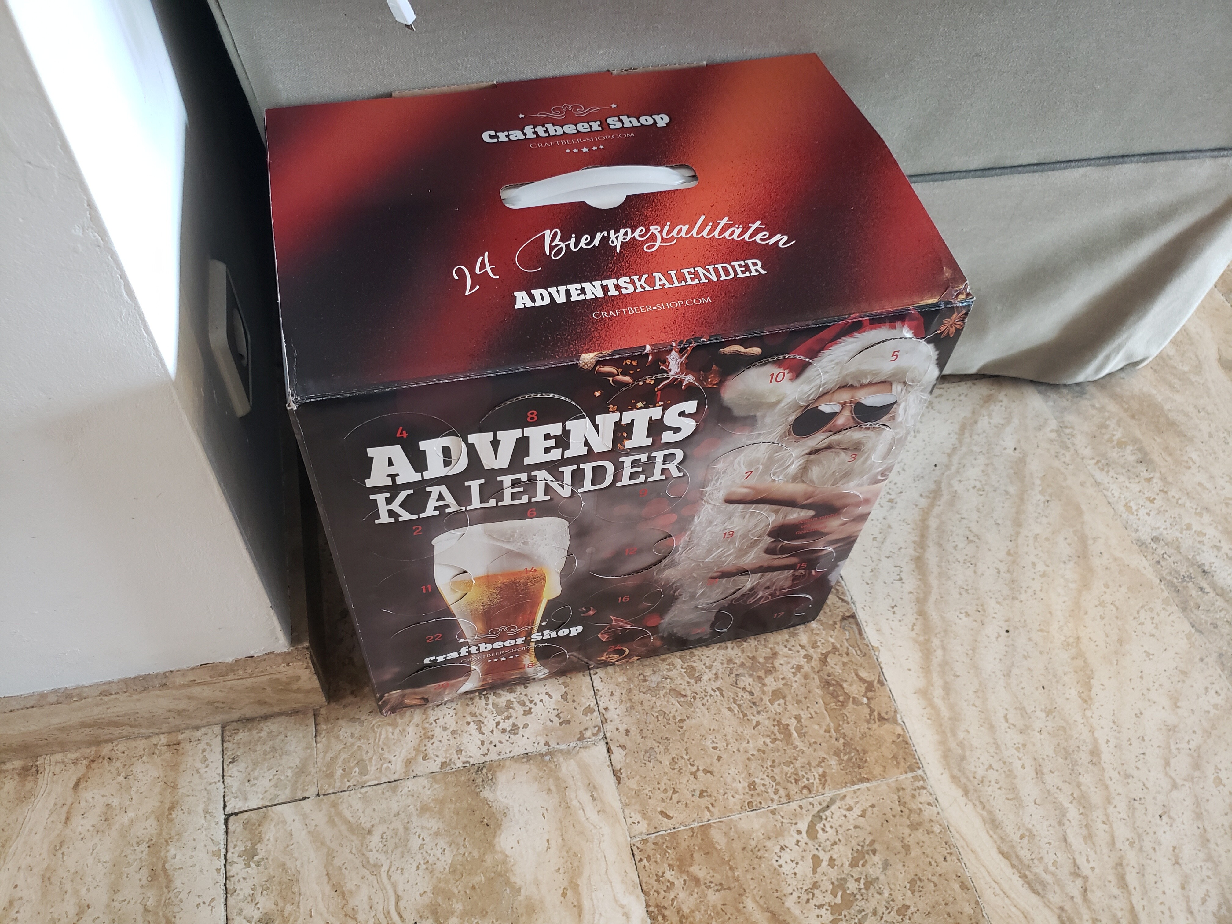 First Day of my Beer Advent Calendar⦠will update when it gets cold. I have to remember to open in the morning and stick in the refrigerator!