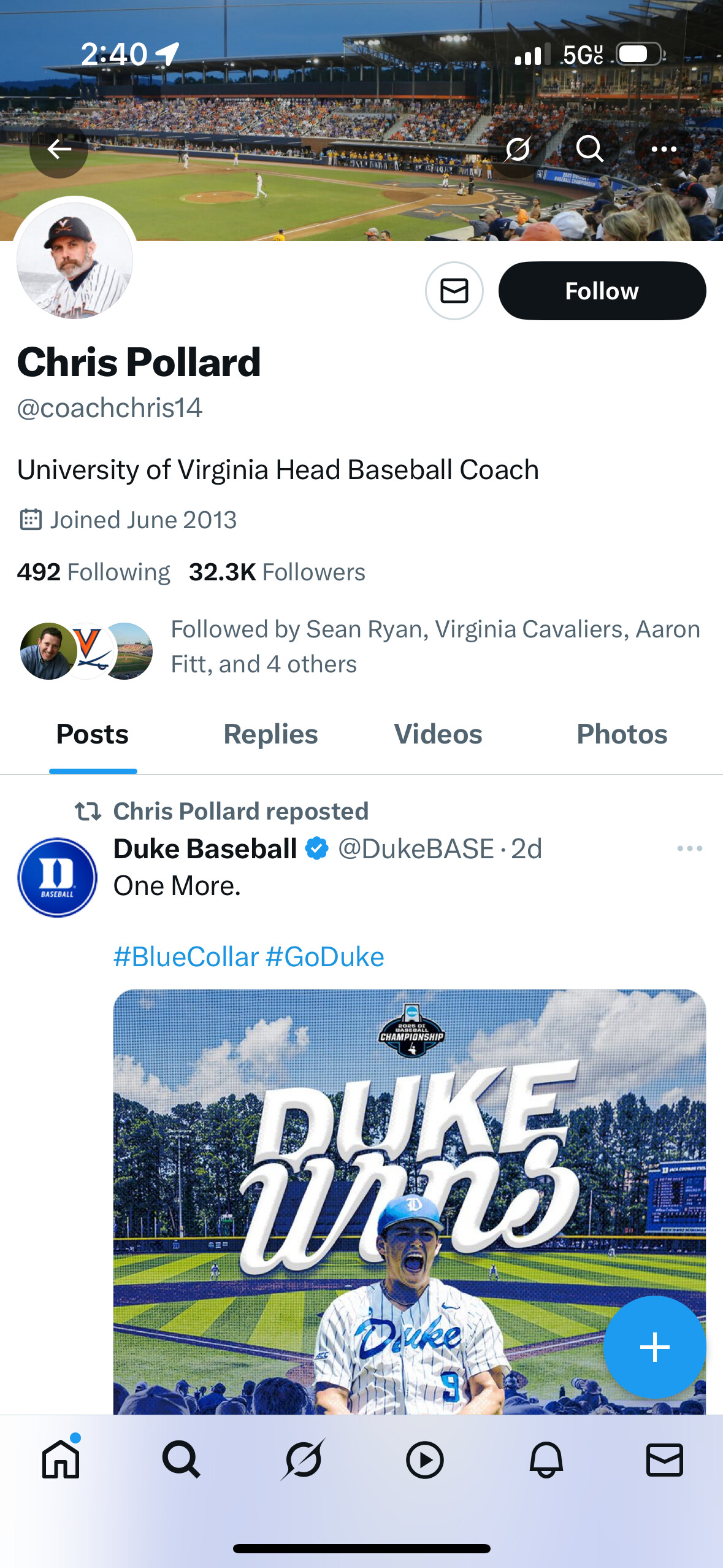 And finally, Pollard is an ace level recruiter of HS talent. Their 2025 class is ranked 12th in the country on Perfect Game, which is higher than ours and features six guys ranked in the top 100, not all of which are threats to go pro immediately. Given that Duke is a very tough place to recruit to, the amount of talent he’s been able to field there is incredible and he’ll have an even larger pool to work with now that he’s at UVA. This is the part I’m most excited for, because I think he’ll be very aggressive in getting the top guys in the state of VA given his ties to the region and also continuing to kill it in NC as well. In my opinion there’s a chance he’s able to bring in enough year one to get us back to the postseason and keep the train immediately rolling.