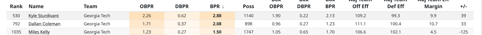 Yep, this is kinda the whole thing. I think the Miya portal rankings attempt this, as guys with a lower predicted 2026 BPR than their 2025 BPR tend to come from good teams (and vice versa). But even then it’s imperfect, as these kind of metrics are best conceptualized as trying to divide up credit for team success (or failure) among the players on the team, but sometimes that doesn’t carry over from one team to another. No one has a team context-free metric, mostly because that seems impossible to construct.