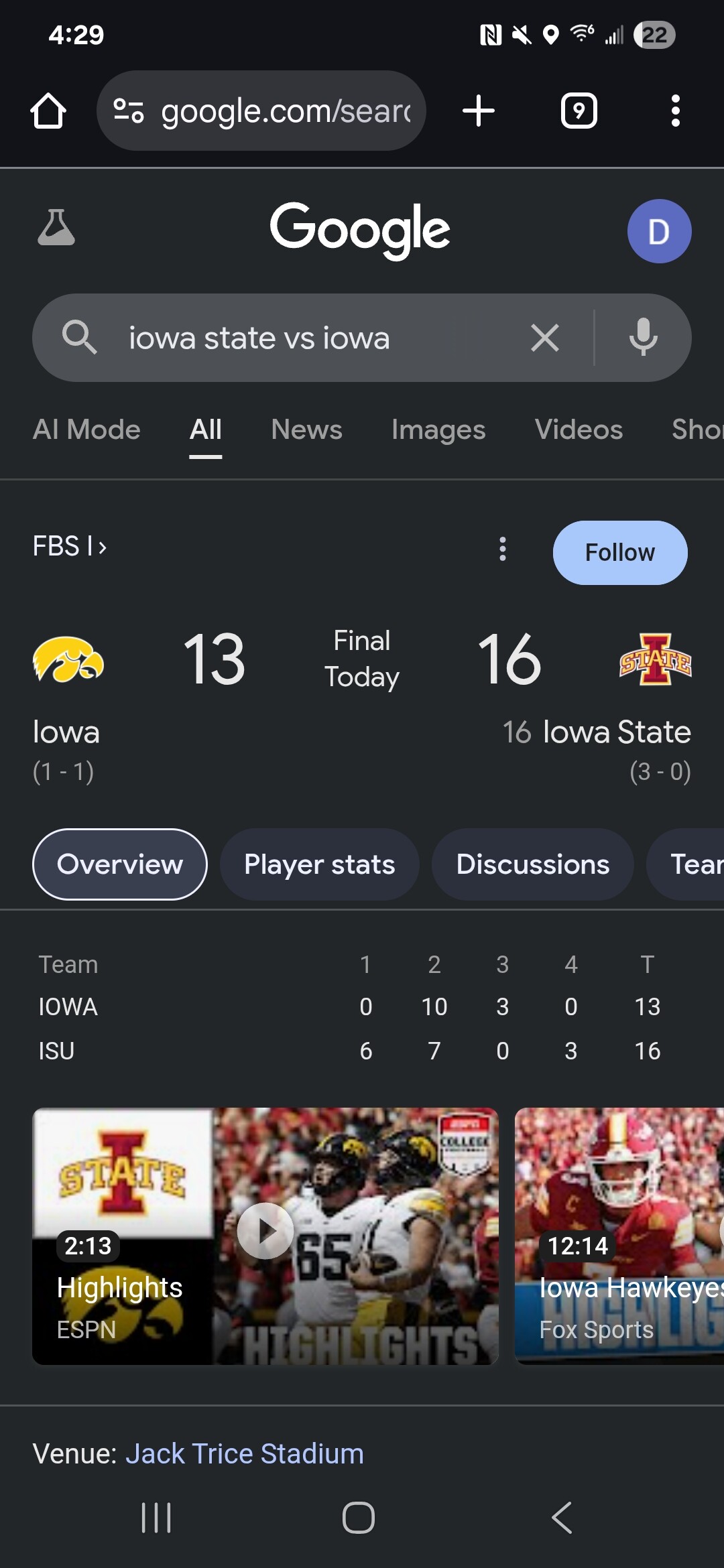 I want to take the over here. For 12 months now Iāve heard that Iowa football in investing in offense. Last year Iowa hit the over in 10 of 13 games. But guess who one of those unders was against? Yep- the Cyclones. Fourteen of the last 16 have gone under. In the past decade, both teams have topped 20 points once in this rivalry. If the trends arenāt enough evidence for you, last week new Iowa QB Mark Gronowski went 8-15 for 44 yards againstā¦.