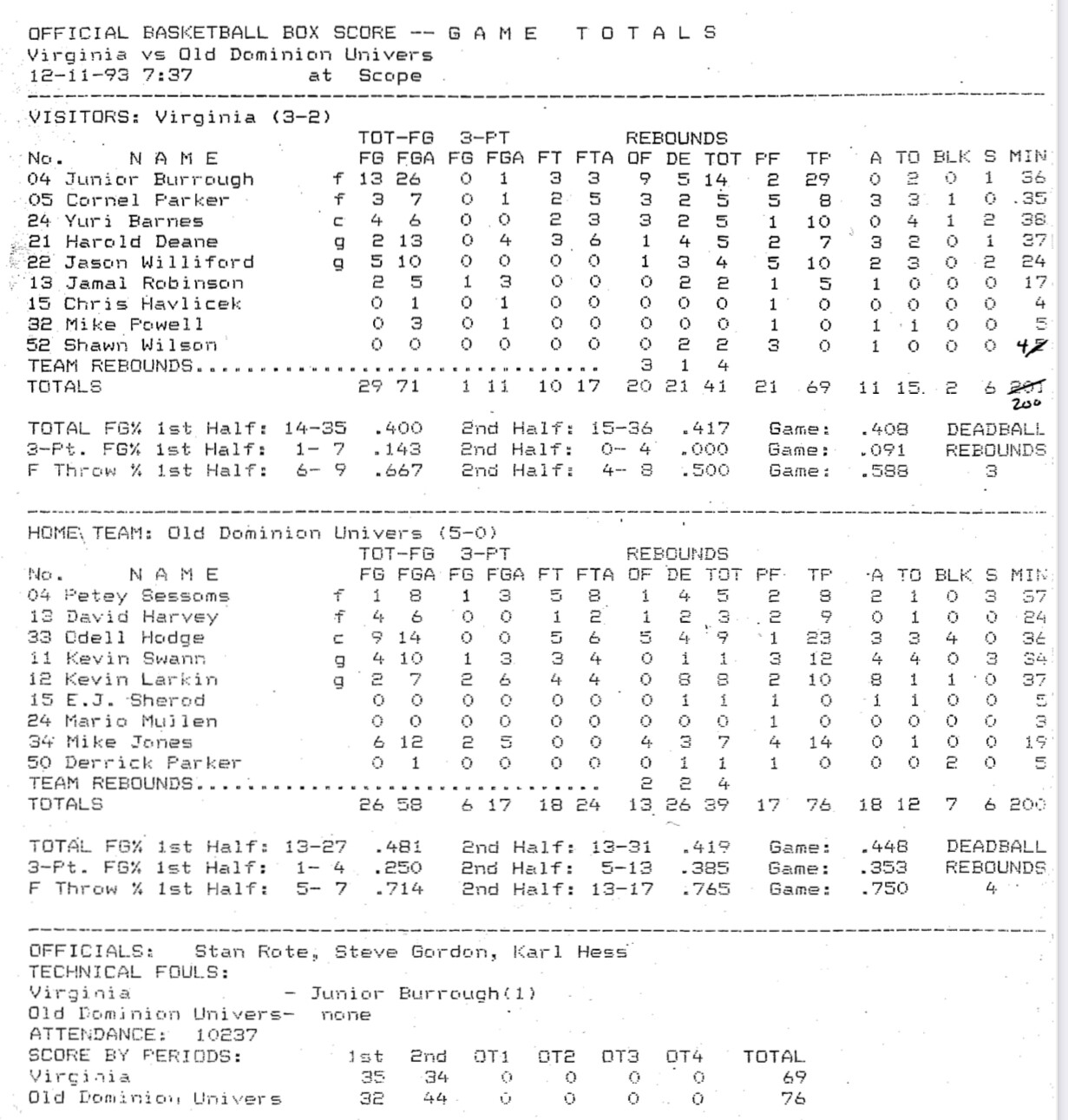 Mike Jones and Odell Hodge had a big day against Hoos in Norfolk Scope in December ‘93. The year after Fresh left, so that was probably why. That and FR Harold Deane had to fill in after Cory broke his ankle in game 1 vs UConn. But (now ODU Coach) Jones and Papa Hodge were great on an ODU team that was ranked in the Top 25 that year.