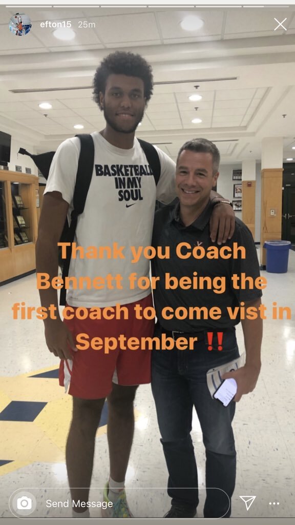 Bennett seems to put a lot of thought and importance on who he sees first each opening day. Reece Beekman held that honor a year ago. Kyle Guy once upon a time. And several in between that bring up less fond memories. Consider Efton the top target on the board. He’s planning to come for an unofficial visit soon, possibly this weekend.