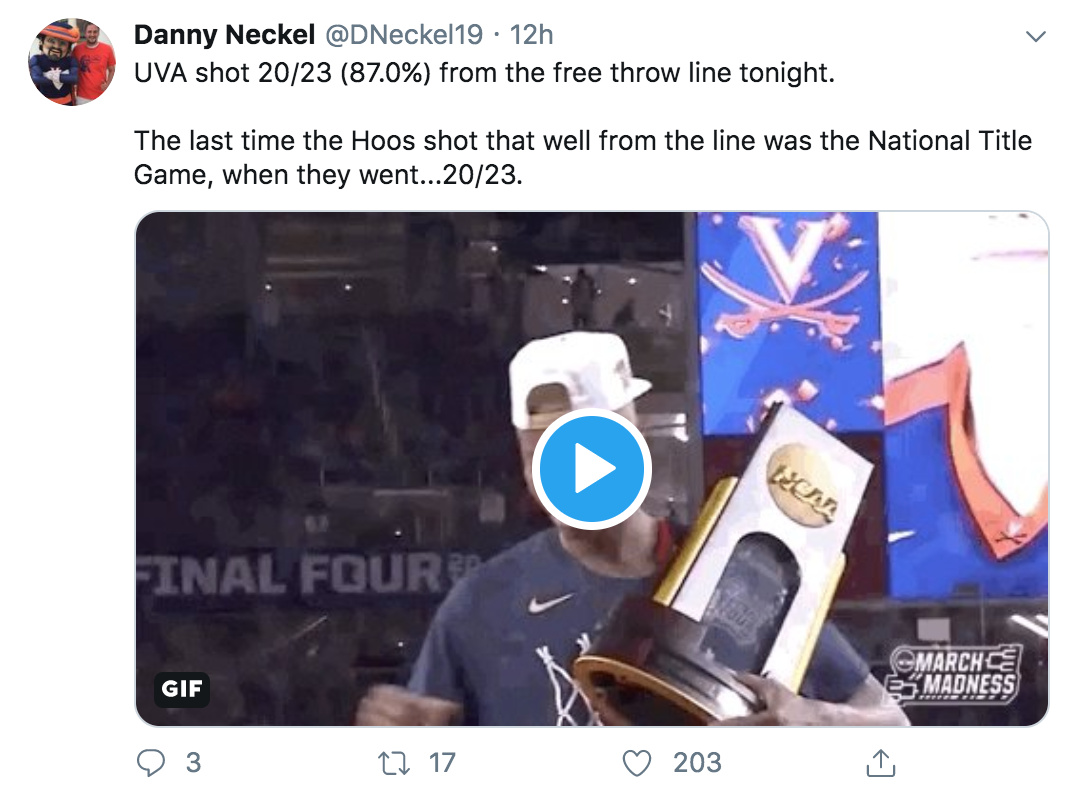 Speaking of getting to the line 20-23 from the charity stripe. Thatās phenomenal. Iād love to know the last time the Hoos attempted 23 free throws and to cap it off with a solid performance at the line was the difference maker in the game.