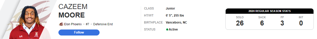 I added hyperlinks to ESPN pages for all the players weāve offered so far in the portal (save for the JUCO LB) on the first post in this thread. In case people wanted to look at their stats or bio.