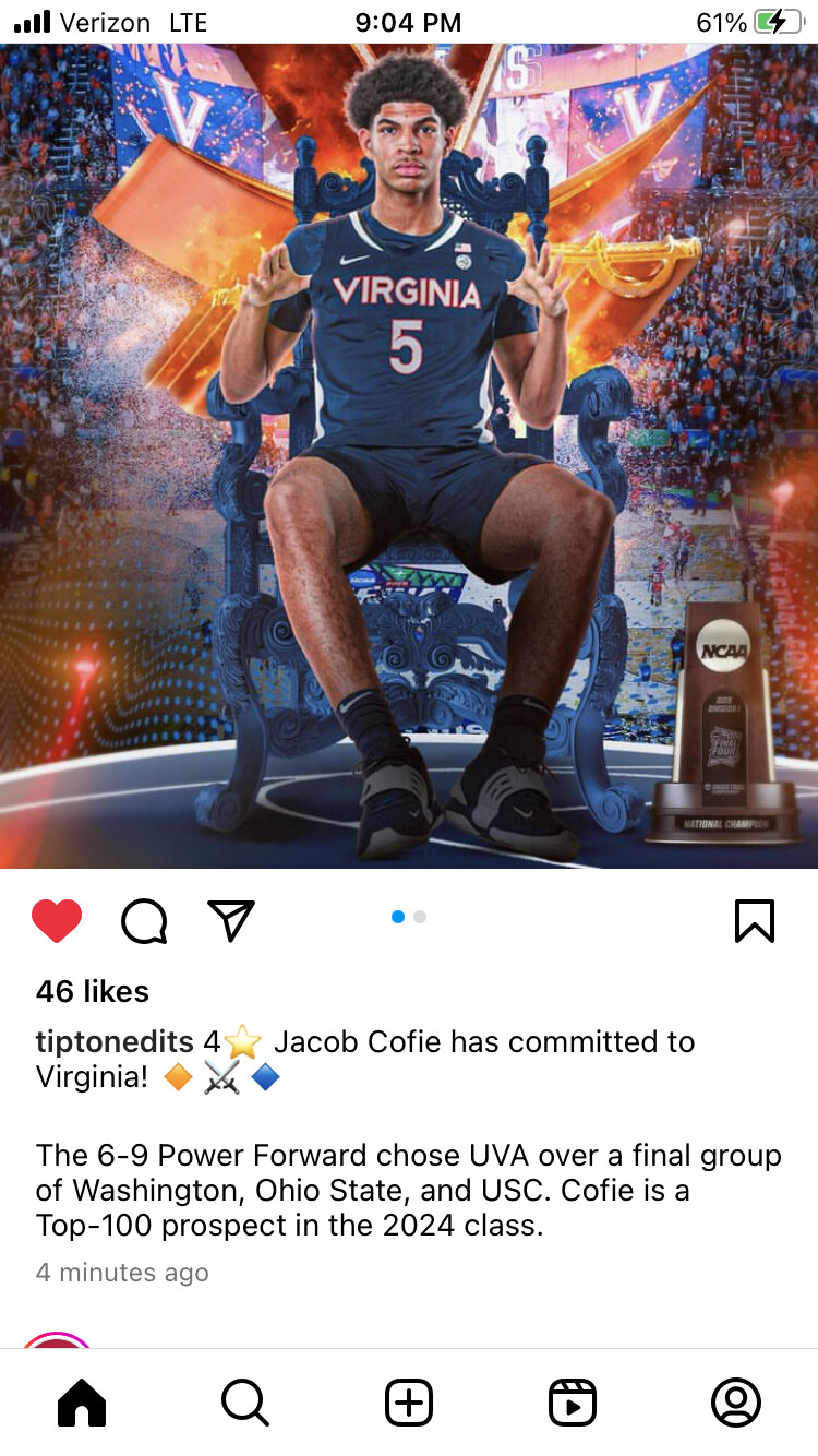 “I can’t wait to get on floor and represent UVA and help us win another national championship. I see a championship in the near future.”