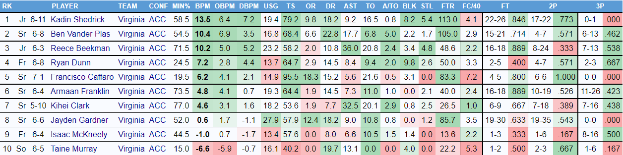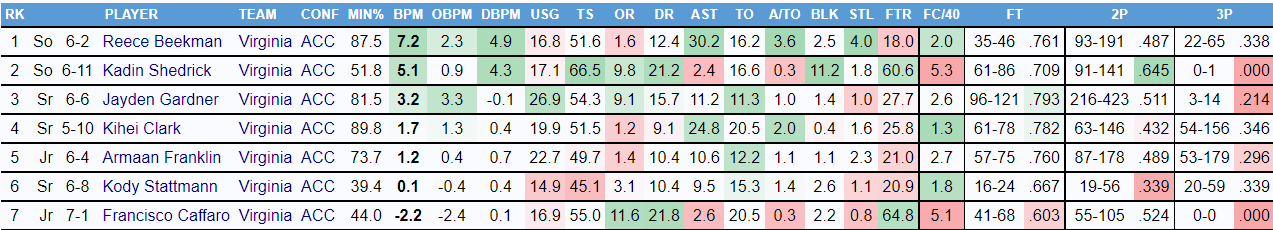 Mckneely can shoot. Hopefully as he gets more comfortable he can show a little more. I think heās gonna be good but heās probably not the second coming of Kyle Guy. (For reference, Kyle Guy had a BPM of +17 through 6 games his Freshman year and roughly +7 for the whole year)