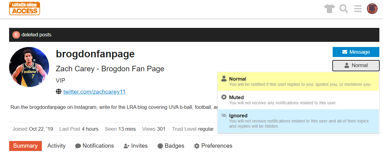 With the growth of the forum, it’s only natural that there be occasional personality clashes. If there’s someone you’d like to eliminate from your Locker Room Access existence, that can easily be done.