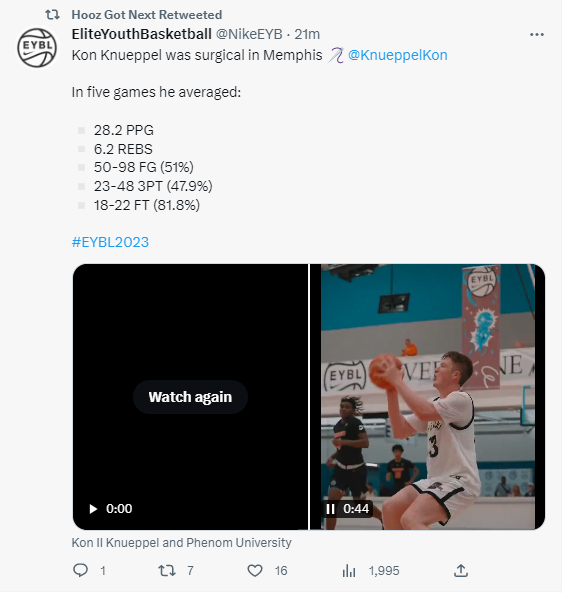 I feel like the Peach Jam is where national media folks (not to mention me) tend to focus on recruiting, if at all, and Kon was playing in some suburb of Cincinnati.