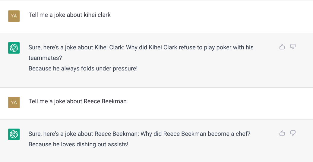If anyone wanted ChatGPT’s stance on the Reece-Kihei wars. Idk why but the harshness of the first one just made me burst out laughing. The AI must also not have the Purdue footage/VT 2020.