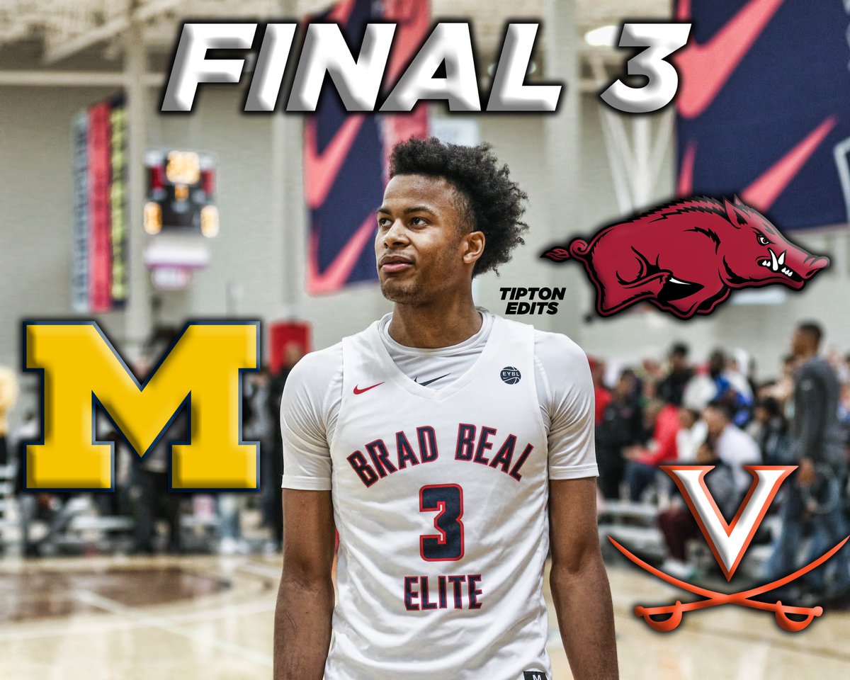 2020 Montverde (FL) SG Moses Moody named a final three tonight of Virginia, Michigan, and home state Arkansas. He’s already taken officials to the other two.