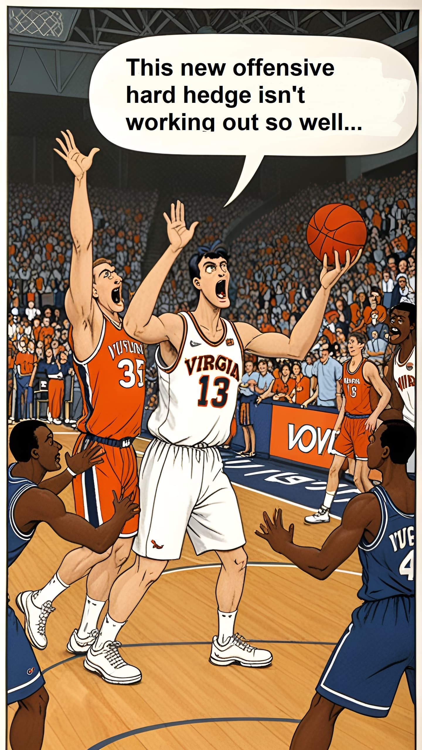 Whoa⦠I was too transfixed on all the different uniforms and a UVa player tackling a UVa player to notice the thumbs