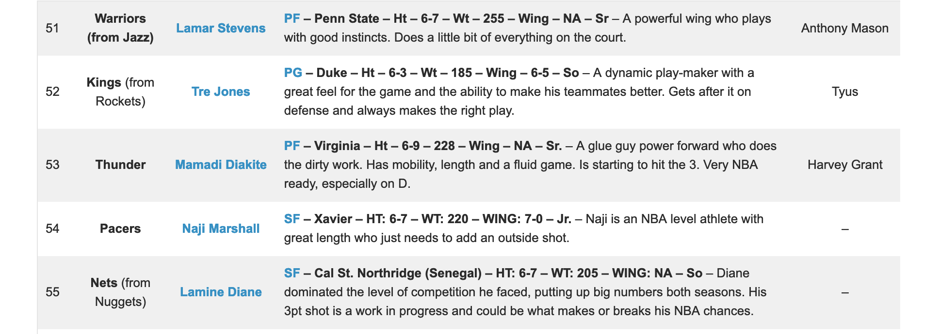 Thought it would be good to start a new discussion thread since the NBA draft is in less than 3 weeks on November 18th. On this mock draft board, Mamadi is projected to go at 53! Seems like he has jumped up in rank compared to months ago.