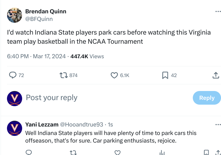 The only people I can think of who we’re rooting against UVa are James Madison fans.