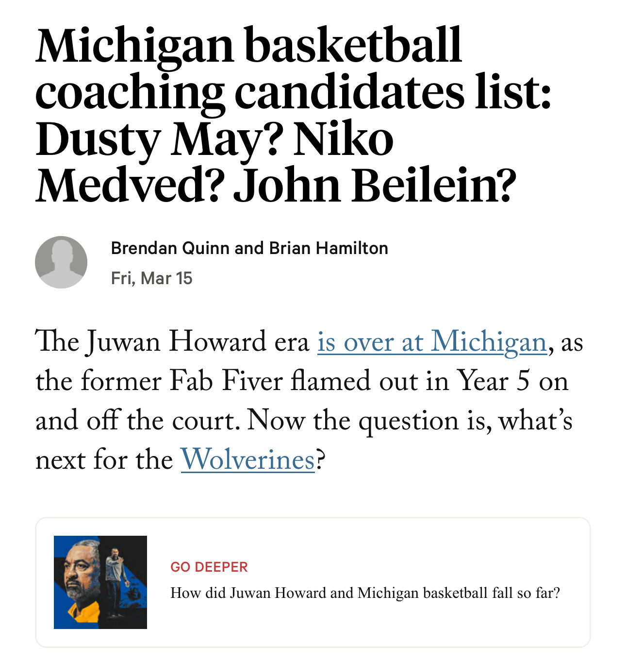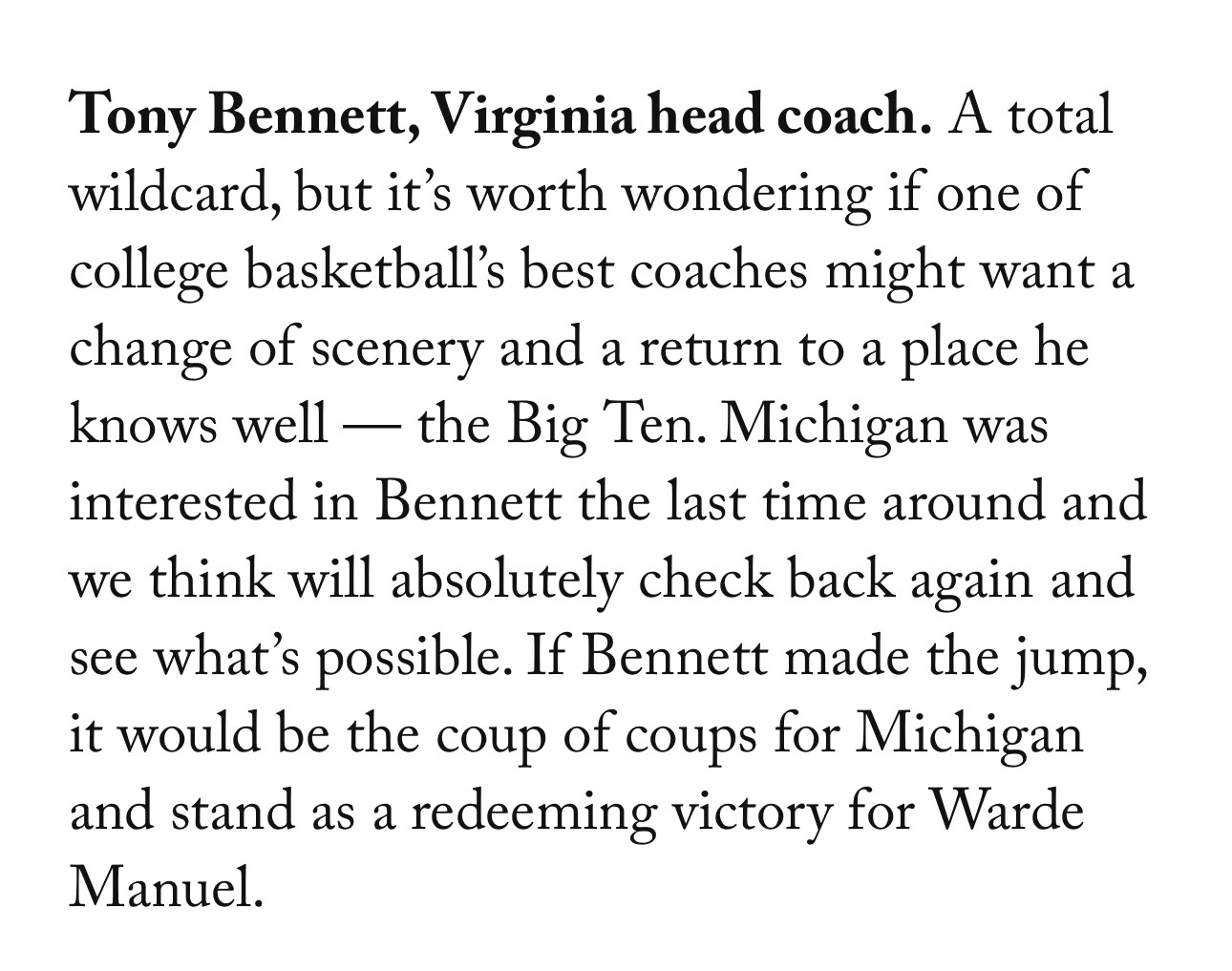 Despite his desire to watch guys park cars, Quinn included CTB in his Michigan coaching candidates list.