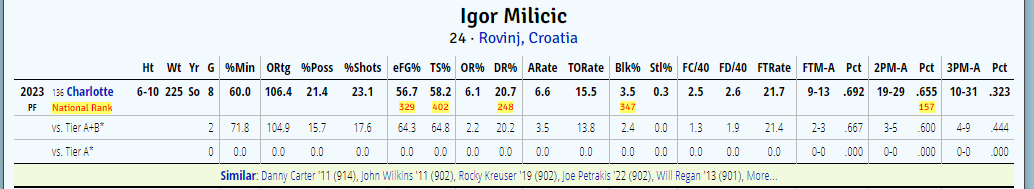 Damn, Casey’s ORating is 7th best in the country. TS% is 72%. He is going off.