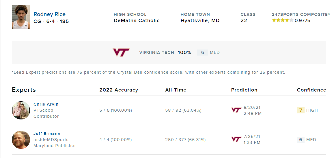 VT received a second CB for Rodney Rice yesterday… yes it is the VT 247 mod, but it is a level 7 confidence…