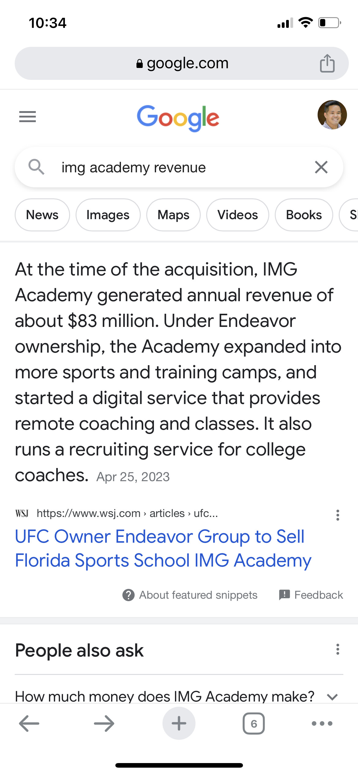 Also saw that Endeavor bought the IMG parent company for $2+ billion in 2014, but that includes more than just the academy.