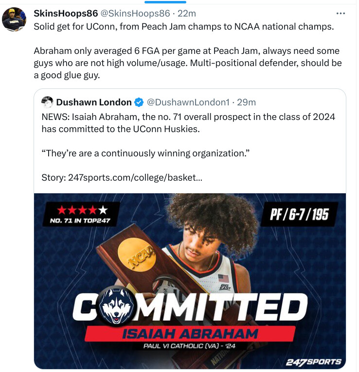 Could see the Johnnies making another run as well. They were heavily in the mix the first go around, have no available scholarships, and have said that they’re willing to use NIL to cover the cost of education and presumably much more for another big man. Also doesn’t hurt that he’s from Brooklyn
