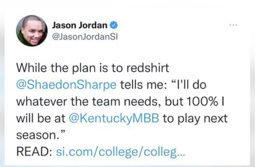 No chance Kentucky coaches actually expected Sharpe to play there. Kinda screwed up they let fans believe it though.