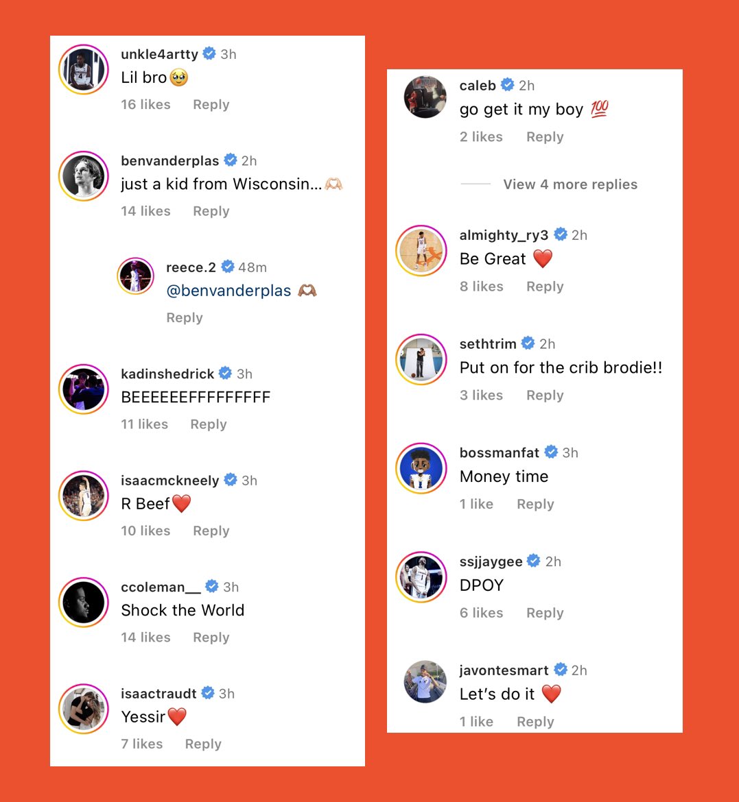 Reece. love the kid want the best for him. I’ll repeat the line I’ve said many times on this board, I hope he has good people around him giving him good advice.