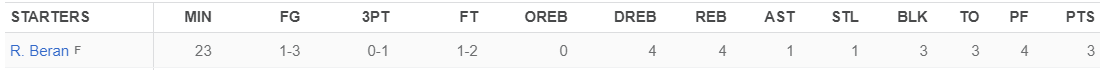 And I’ll even admit this was against Wofford, so these numbers might be a little inflated – but even so, I think I’ve made my point. The guy put up a triple 4 (defensive rebounds, total rebounds, and fouls) in only 23 minutes. You can have Dunn. I’ll take Beran.